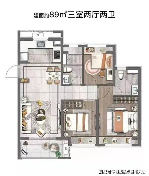 约83㎡做到了三房两厅一卫
