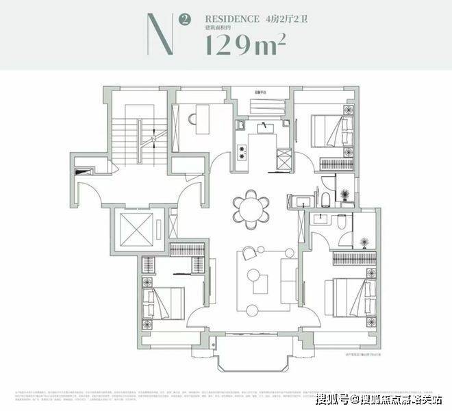 建面约129㎡4房2厅2卫:一梯两户,层高3.05米,三开间朝南,全卧飘窗,LDK一体化设计,南北直通,南向整体面宽约11.1米,其中客厅面宽约4.4米,主卧面宽约8.6米!