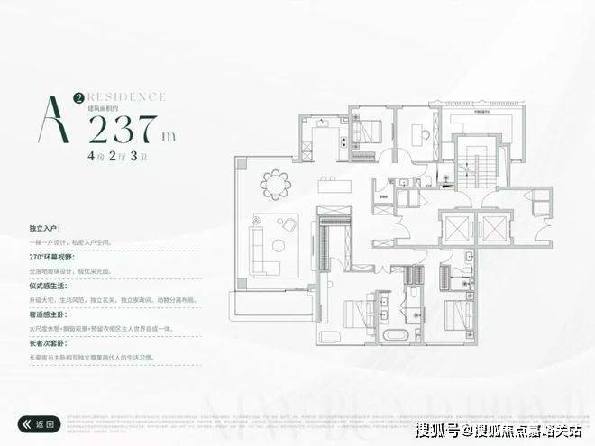 10#总高13F,户型为建面约199-236㎡4房2厅3卫,两梯两户,层高约3.15米。