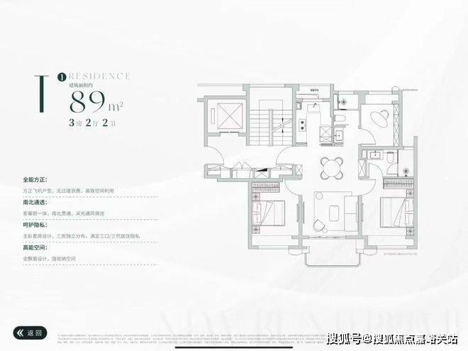 稀缺户型:首推89㎡三房,采用“飞机户型”实现三开间朝南,是核心区难得的小户型选择。