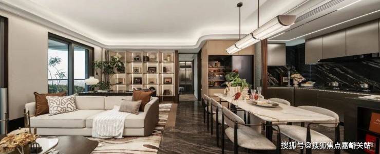 样板间同样把南书房打开,和客厅融为一体,形成了一个巨大的客餐厅空间.