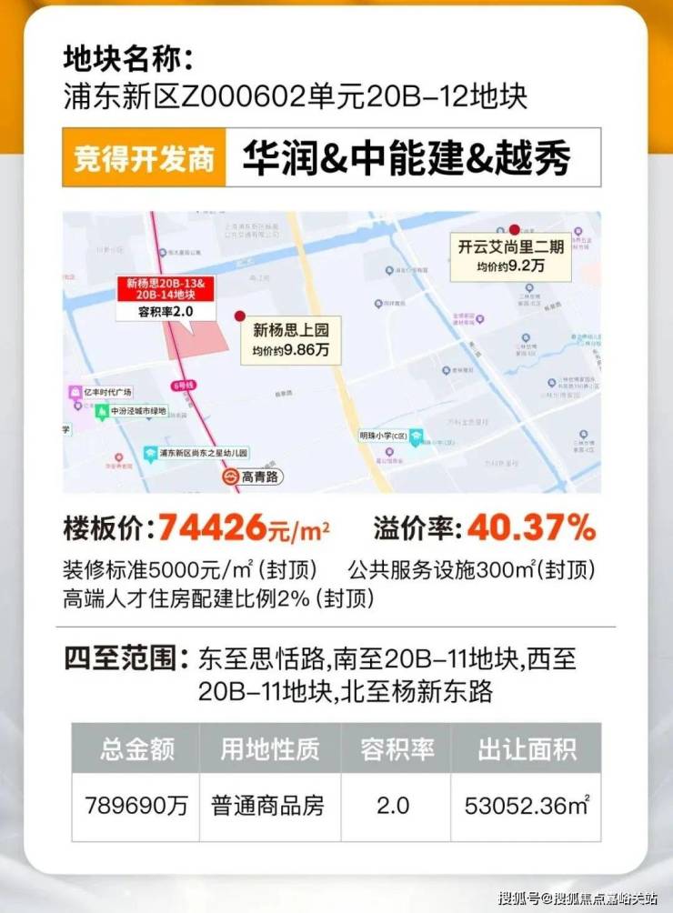 去年11月,5家开发商经过举牌202轮的鏖战,华润&中能建&越秀以约78.97亿拿下浦东新杨思地块。