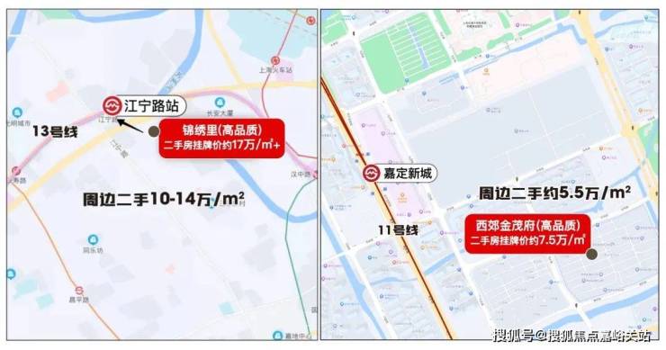 ②.嘉定新城西郊金茂府凭借地铁房+鹤立鸡群的品质,二手房站到7.5万/㎡,比周边相近房龄次新高约2万/㎡。