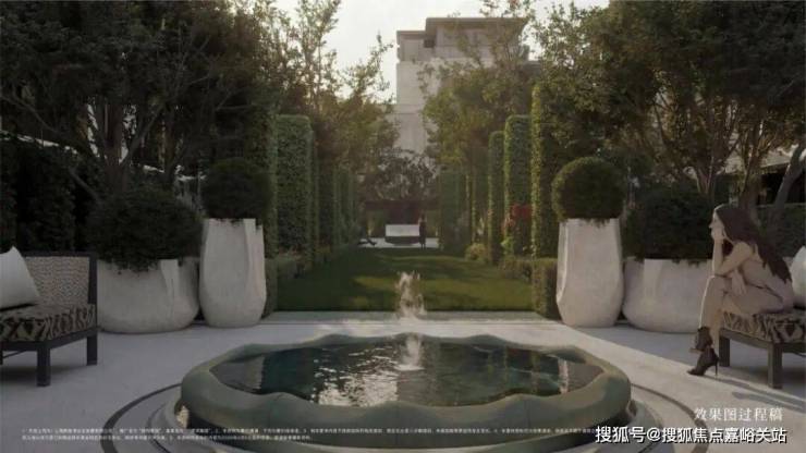 保利·珺园的社区景观以"两环二轴"为核心布局,带来上海罕见双下沉式庭院,并以东方庄园的世界表达为内核。