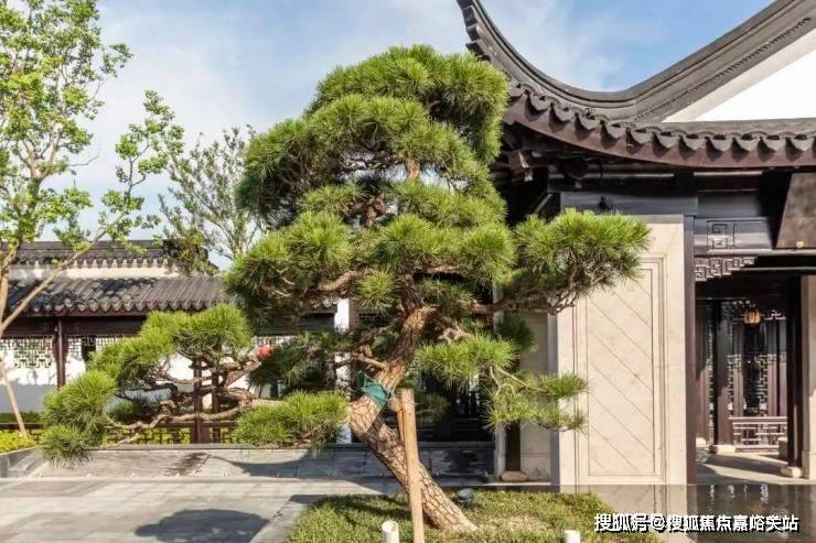 售楼处门前的黑松很有来头。为了寻找一棵理想的黑松,景观设计师寻遍长三角以及东亚,最终在日本一位收藏家的手中以重金购入,又经空运而来,按照黄山迎客松规格严格打造,彰显仪式感。