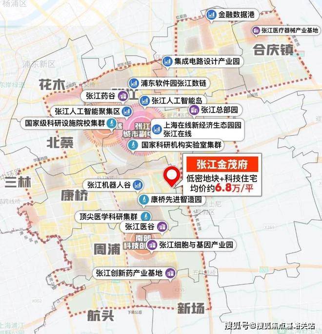 同时,张江金茂府还 坐享张江科学城的产业红利!直线距离 5公里即达中环线和张江科学城芯区域!(百度测距)