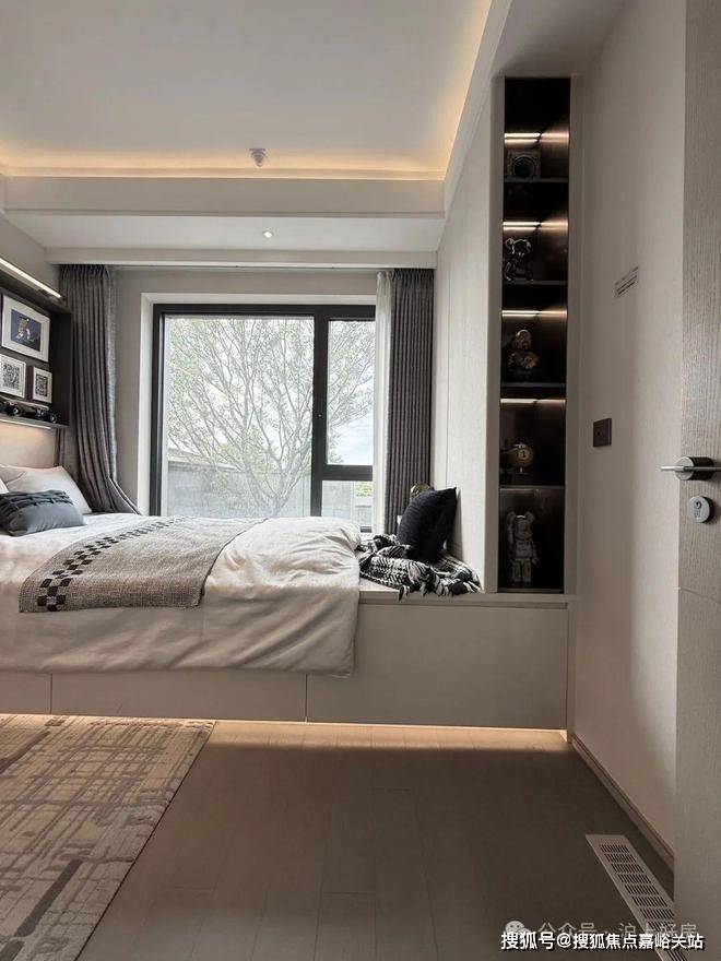 主卧套房设计,让私人领地更显尊贵。 南卧的飘窗设计,拓宽视野边际的同时,更让清风与阳光自由穿梭。 卫生间干湿分离的智慧布局,则巧妙平衡了实用与美观,让日常打理变得轻松愉快。