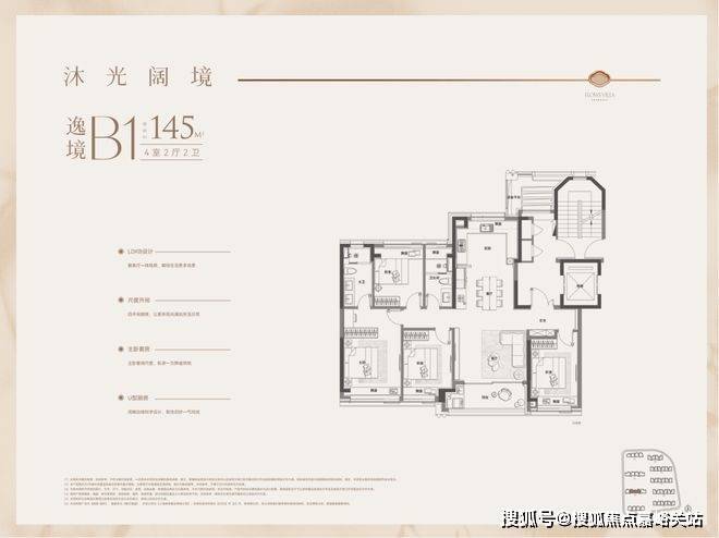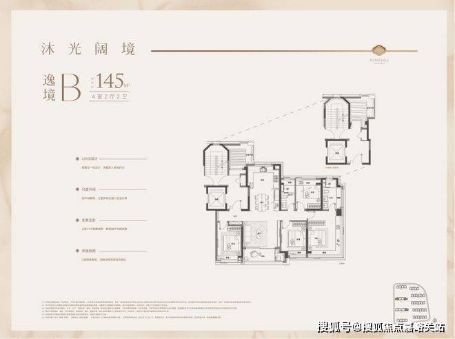 户型特点:4开间朝南,LDK一体化设计,南北通透。客厅面宽达4.3米,外接4.8米长阳台,采光通风俱佳。主卧带270°转角飘窗,主卫也有飘窗赠送。全屋飘窗设计,独立电梯厅,私密性与尊享感强。