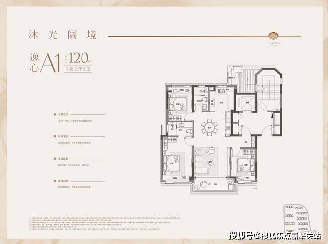 户型特点:边套户型,3开间朝南,方正格局。客餐厅一体化设计,餐厅空间宽敞,客厅进深较短但可通过与阳台连通优化空间感。全屋飘窗设计,边套南北卧室为270°转角飘窗,采光充足。独立电梯厅约7-8㎡,可改造为玄关或收纳空间。