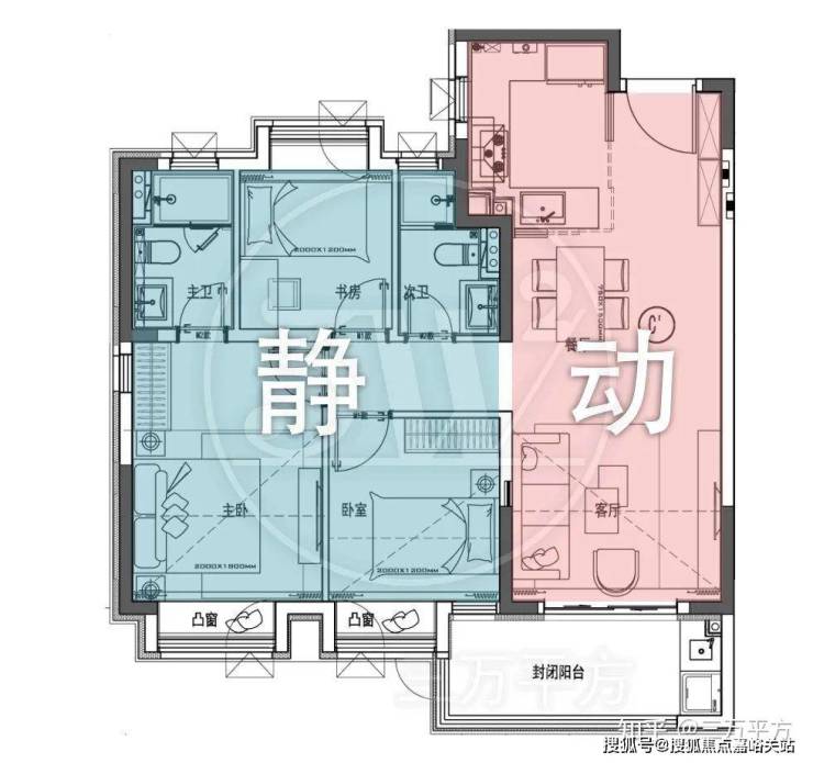 【动静分区】型式的优点在于分区明确,一般更长面宽和更短进深,给人更好的采光和通风效果。