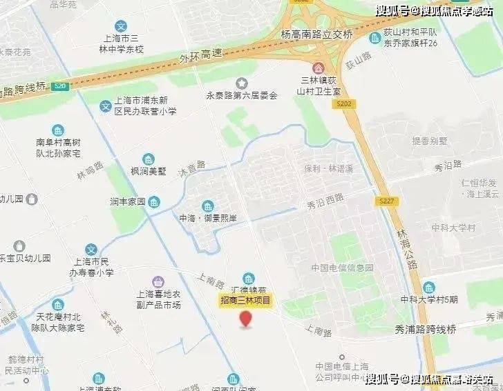 项目位于浦东三林板块,属于环外区域,靠近康桥板块。北侧就是三林知名度比较高的三个项目:中海御景熙岸、绿地·香颂、保利·林语熙。林海公路东侧,是去年入市的华发仁恒海上溪云项目。