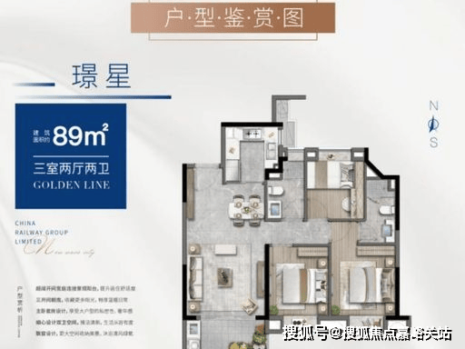1)89㎡三房两卫|刚需之王,219 万起,得房率约 79%