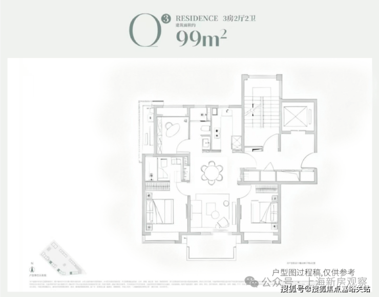 建面约86m²3房2厅2卫: