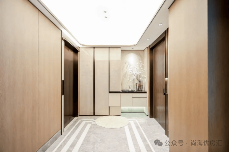 独立电梯厅的出现,相当于多了一个小厅,大概增加了约6-8㎡空间 (注:数据为人工测算,可能存在一定偏差) ,可以用来规划摆放收纳柜等,其实也变相提高了“得房率”。