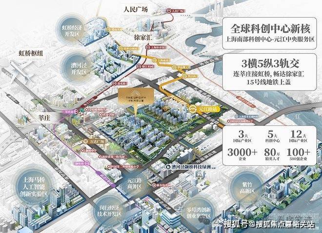 保利光合上城坐落于上海闵行主城核心区,坐拥双轨交优势(15号线元江路站地铁上盖,5号线环绕),紧邻虹梅路高架,仅需3个红绿灯即可快速抵达中环。