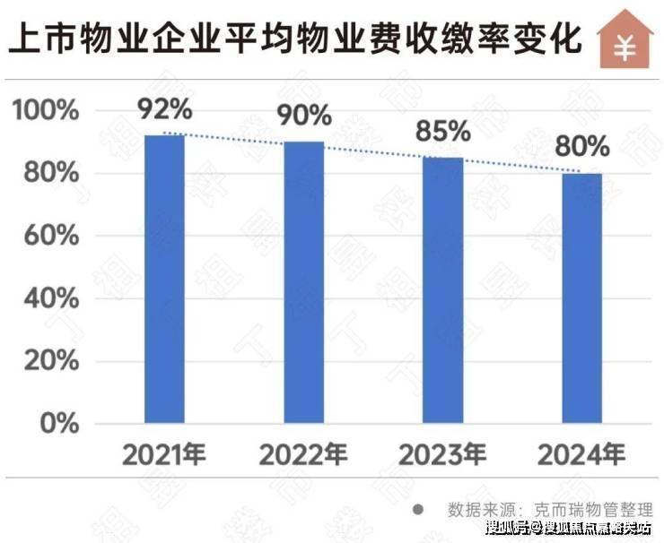 据克而瑞物管统计,2021年至今,上市物企平均物业收缴率已从92%跌至2024年的80%。