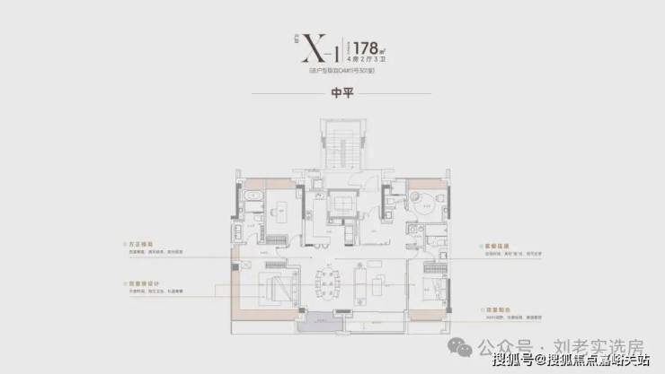 项目的中平 四开间朝南 ,超大IMAX的采光面,妥妥市区豪宅大平层的尺度感。
