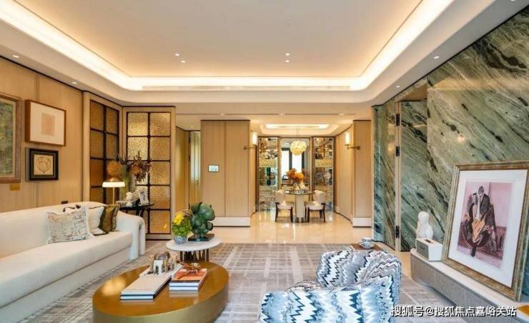 例如入户玄关铺设有“石材皇后” 鱼肚印象 ,这种级别的奢石在很多项目中通常仅作局部镶嵌。