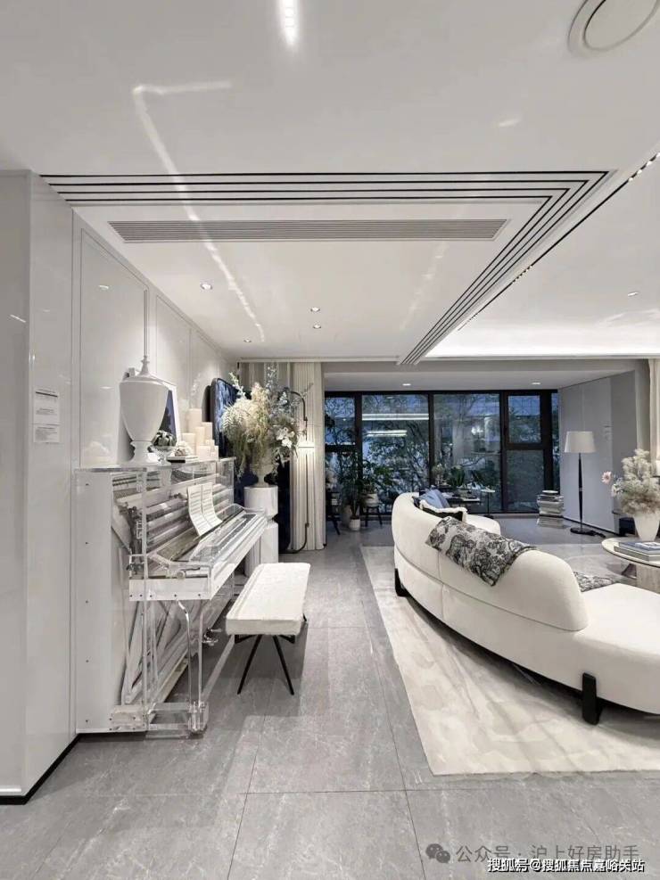 此外,像私享的入户梯厅可以做家庭小型储藏库;沙发后面的空间可以摆放大体量壁柜;大面宽阳台两侧也可作为定制储藏空间;