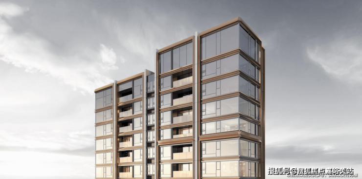 同时,南侧还运用了铜色的铝板和浅色金属板,这样立面风格,再搭配上塔冠的造型,实在太抓眼球了。