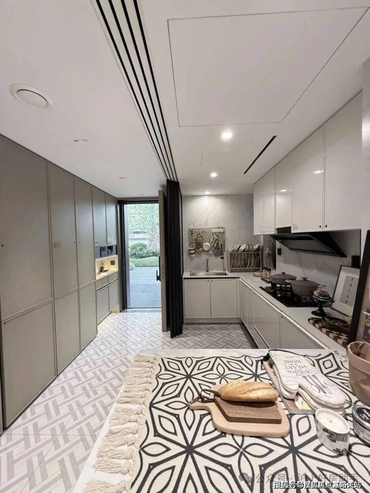 比如,厨房配了珍珠白吊柜、三组抽屉式拉篮合理搭配,调料架收纳、大容量踢脚抽、清洁用品收纳区,米面粮油、碗碟刀叉都可完美隐身。