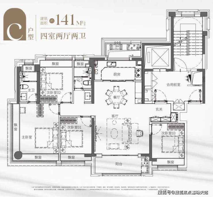 全屋足足四个飘窗设计 ,带来更多的采光和更好的通风,让你无需羡慕老洋房的采光。
