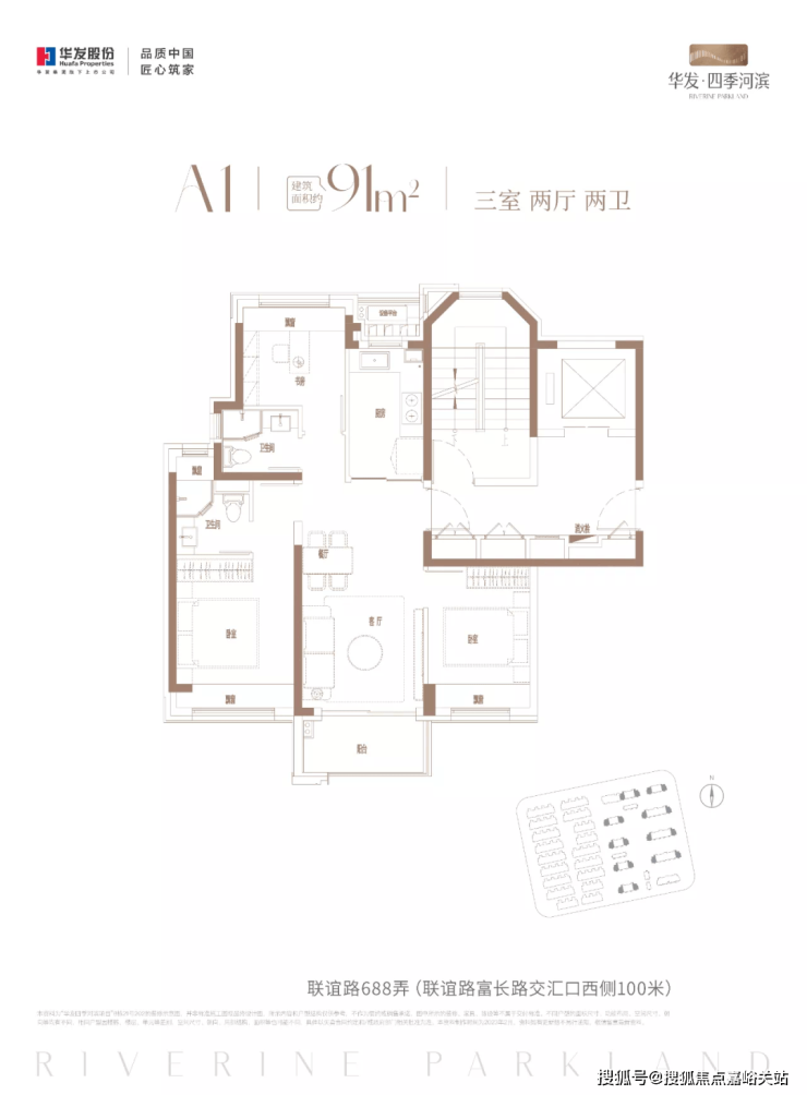 建面约91㎡3房2厅2卫(500w级人气户型)