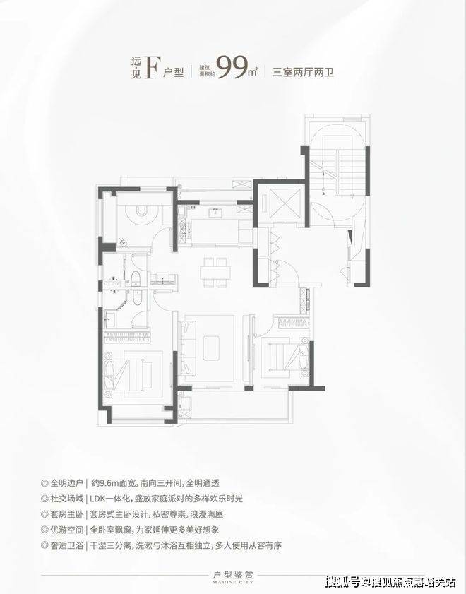 3、楼王H户型:270°环幕江景,绝佳视野和尺度