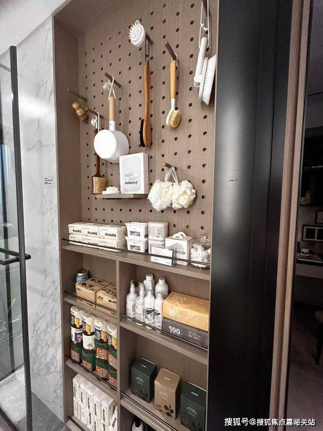 可抽拉的零食柜、厨房抽屉式碗碟拉篮、包括卫浴的收纳墙,于细节之处见真章。