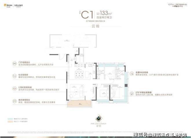 133㎡的四房产品是项目的明星户型,板块内以及整个中环难得的改善型作品。