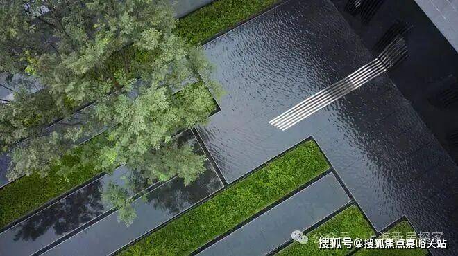 围合式的下沉式庭院,配合形态各异的水景,整体景观立体又灵动: