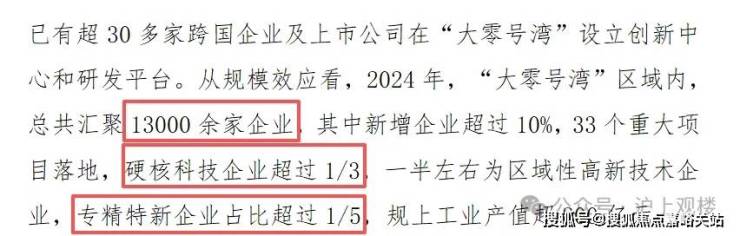 数据最有说服力: 你看看人才数量,且截止2024年,大零号湾已汇聚13000多家企业,关键的是,新增企业中1/3都是科技企业!