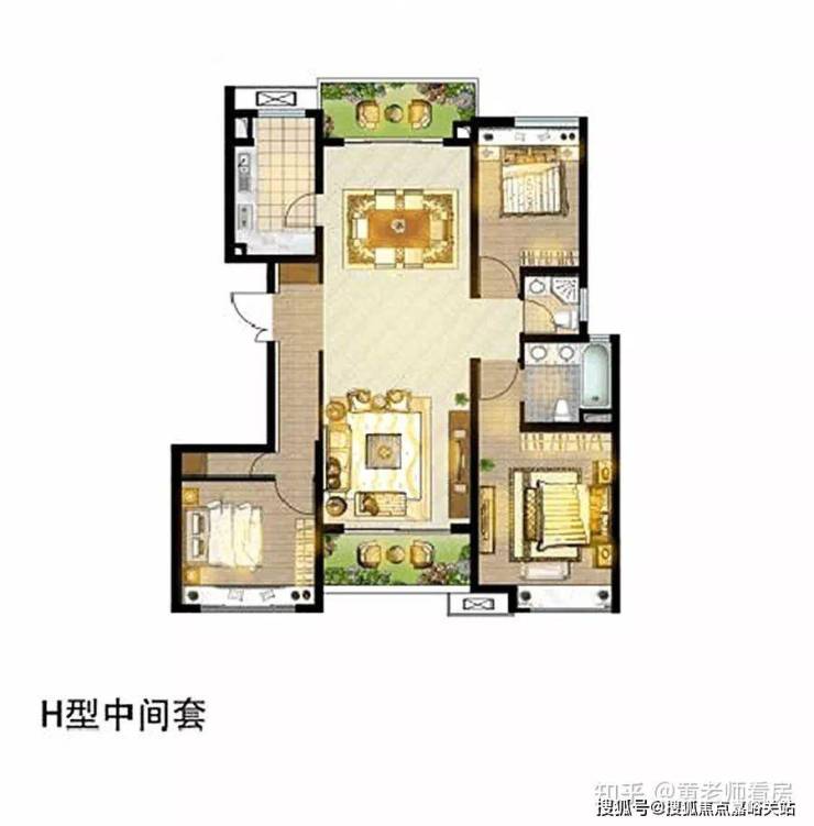 六期高层和五期较为相似,中间套132㎡,边套139-142㎡。