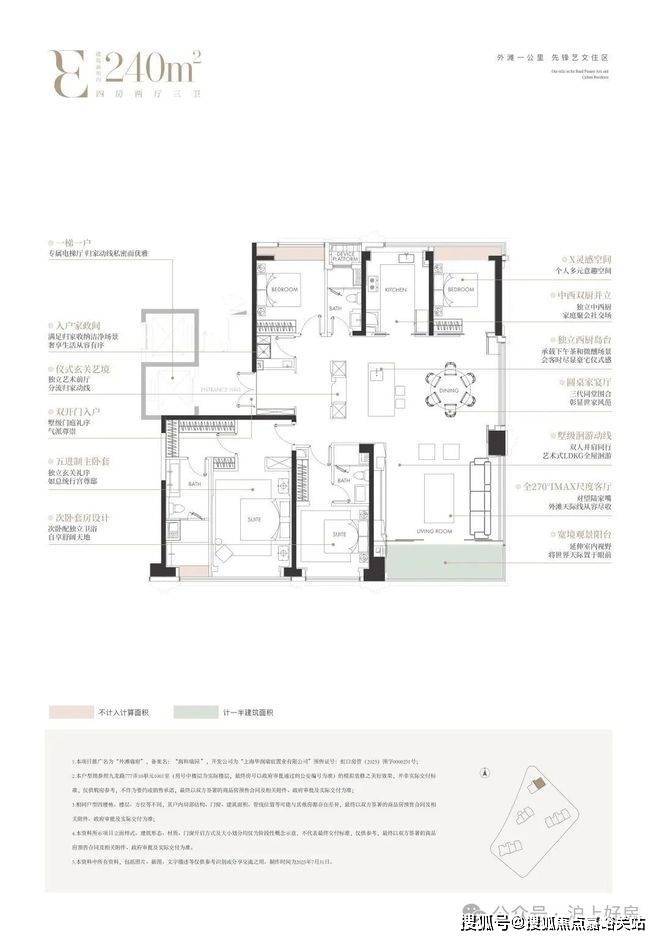 建面约240㎡4房 总价约3200-4100万