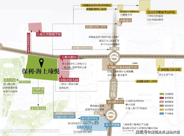 保利·海上瑧悦距离中环仅约3.2km,与地铁15号线丰翔路站距离约500米,是实打实的中环旁真地铁盘。