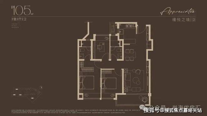 建面约105㎡3房户型,总价400万级即可上车!堪称同等总价段的改善天花板!三开间朝南,约9.6米大尺度南向面宽,最大程度揽光入室;客餐厅一体化 ,连接厨房和南向阳台,动线流畅,也是更大的欢乐聚场;创新研发S墙设计,预留冰箱专属位置,释放厨房使用空间 ;主卧套房设计,奢享独立卫浴和衣帽间,尽享尊崇。