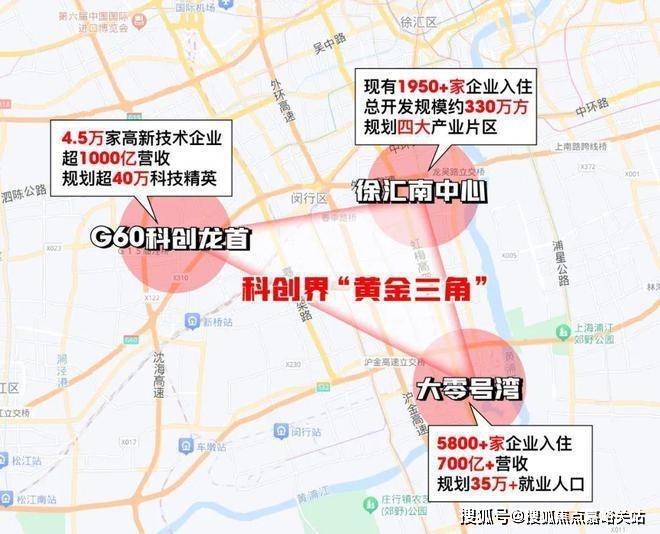 G60科创龙首与徐汇南中心、大零号湾,被业界喻为科创界的”黄金三角“天花板!