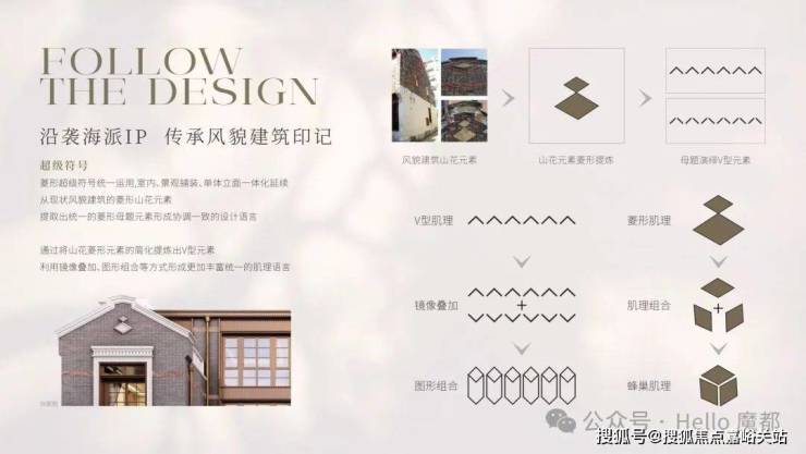 超级符号:菱形超级符号统一运用,室内、景观铺装、单体立面一体化延续