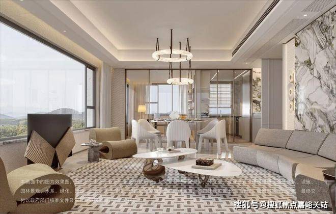 【约102㎡样板间】三房两厅两卫格局,同样的布局设计巧思应用于102㎡,打造出近乎双套房的生活体验。5米面宽横厅设计,营造极致通透感,臻选奢石融入空间,优雅时尚。厨房科学动线设计,搭配国际品牌五金和厨电,悦享精致烹饪时刻。星级主卧,独立卫浴,将空间最大程度延伸,打造舒居体验。