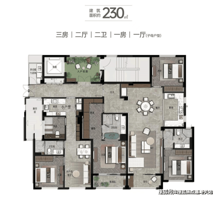 230㎡子母户型3房2厅2卫/1房1厅1卫▼