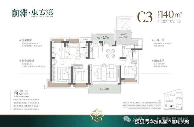 3. 140-175㎡ 四房两厅三卫(终极改善,980-1480 万)