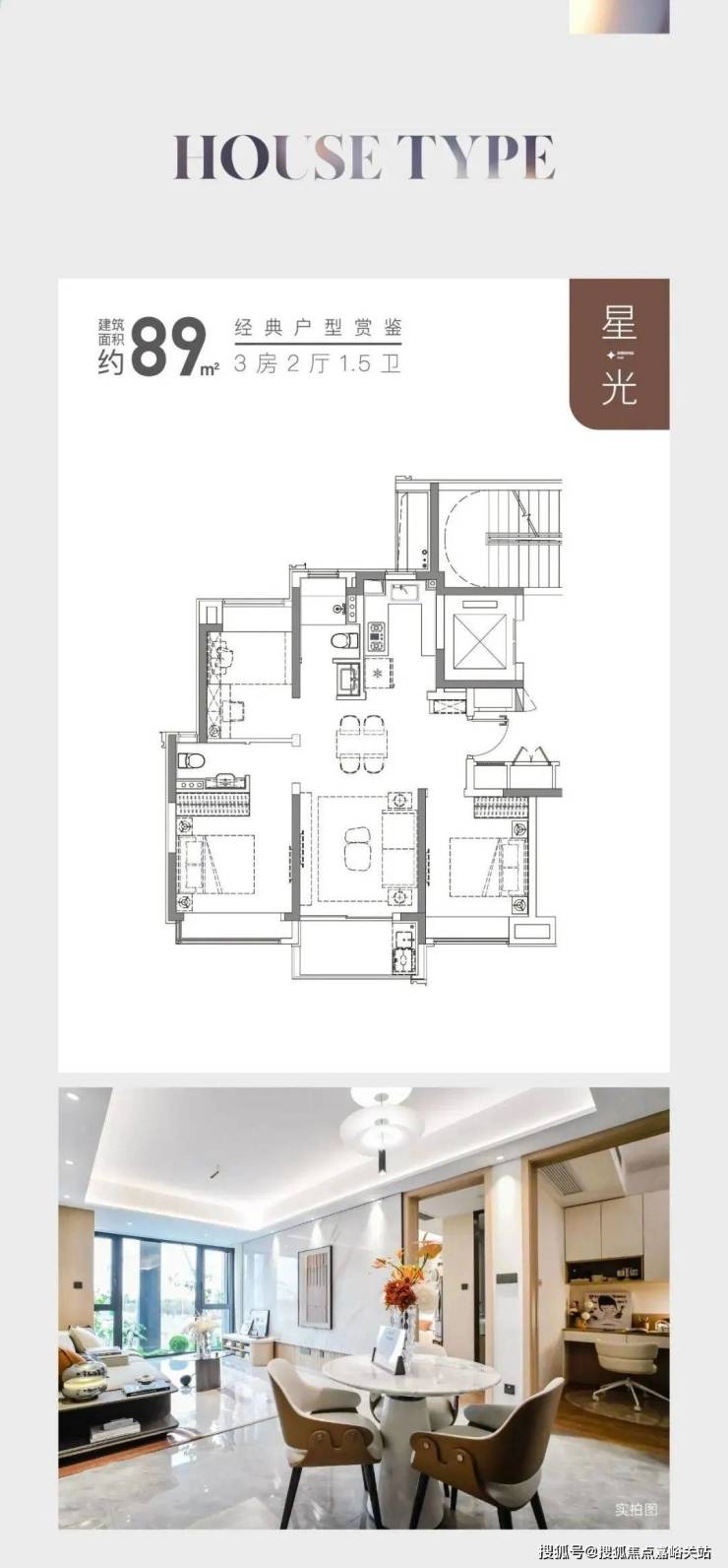 建面约89㎡户型,三开间朝南,并且全卧室带飘窗,室内的采光、视野以及空间延展性都非常出色。