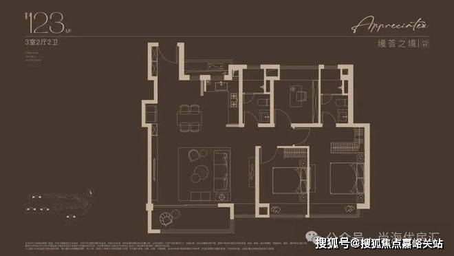 建面约123㎡3房户型,户型方正,三口之家的改善进阶之选!巧妙预留X空间,既可成为客厅空间的延伸,也可独立成室,实现更多功能想象。约12.5米南向面宽,搭配270°宽景阳台,窗外美景一览无余。