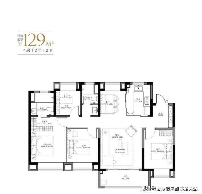 产品: 103㎡、107㎡的三房两厅两卫及123㎡、129㎡的四房两厅两卫