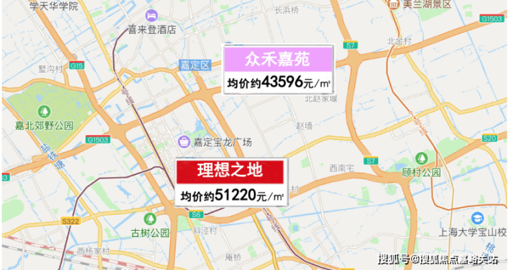 从人民广场为中心,直线距离约20公里,所覆盖的环线区域有南翔、徐泾、唐镇、川沙等板块的新房价格约600-700万之间。而从地图直线距离来看,众禾嘉苑不仅距离市中心更近,且总价仅323万起,其价格洼地的优势已显而易见!