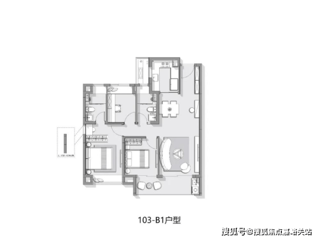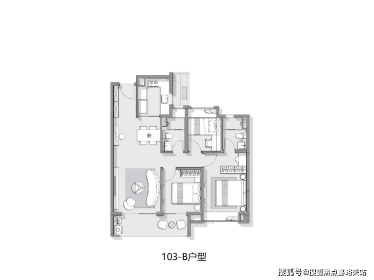 建面约103㎡3房2卫户型图:☑️☑️众禾嘉苑售楼处电话:400-1183-605☑️☑️