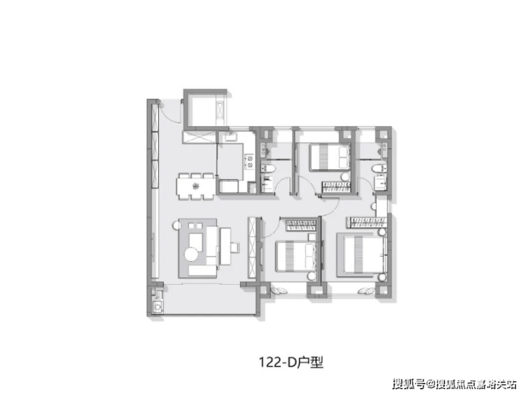 建面约122㎡3房2卫户型图:☑️☑️众禾嘉苑售楼处电话:400-1183-605☑️☑️