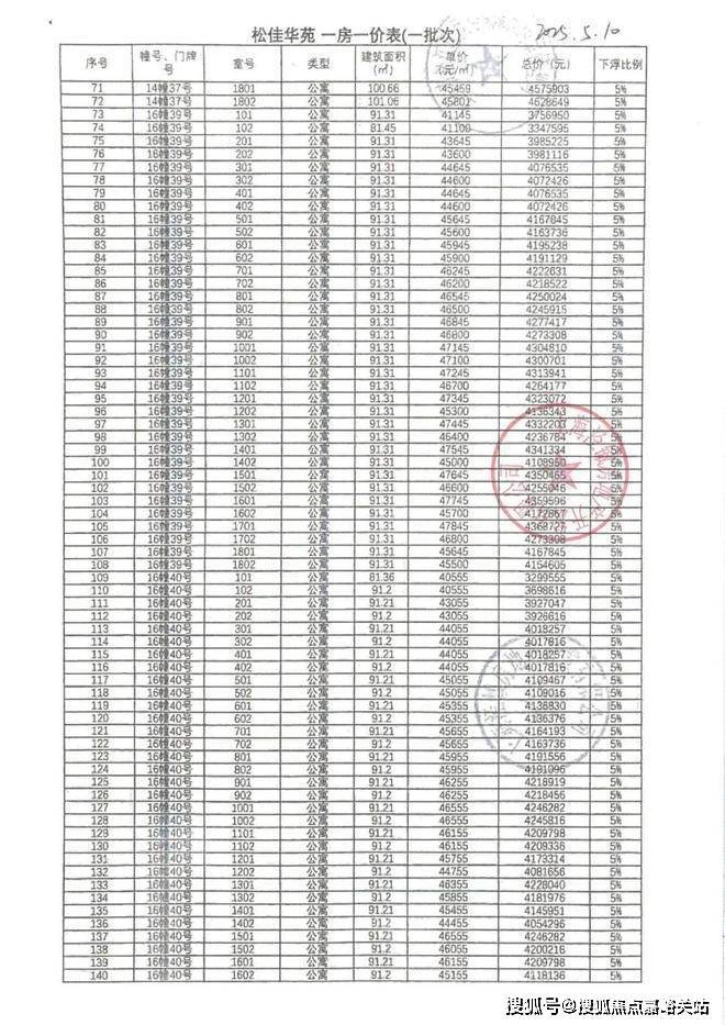 一房一价表