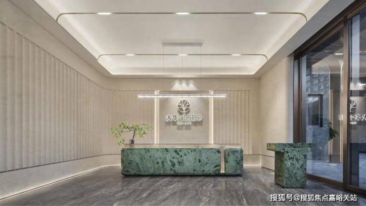 整体迎宾空间耗材约1800片大理石,这样的大门规格、石材用料以及用心程度,无不体现出大华公园柏翠对标豪宅的决心。