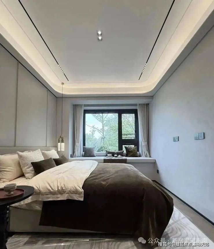 主卧转角落地窗+飘窗,也算是非常少见的了。净面宽约3.6m,不算进门的衣柜,进深大约5.7m左右。根据测算,可以放置宽约2m的床+2个床头柜(宽度约45cm/个)是可以的。